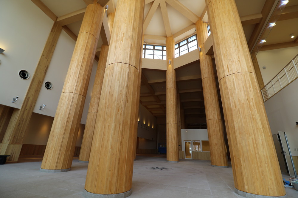 地元南陽の山から切出したスギ材を活用し国内最先端の耐火木造技術を取り入れた集成材を採用しています。