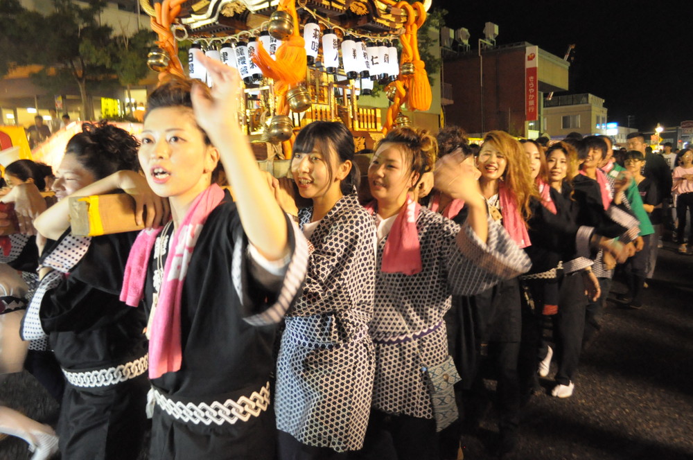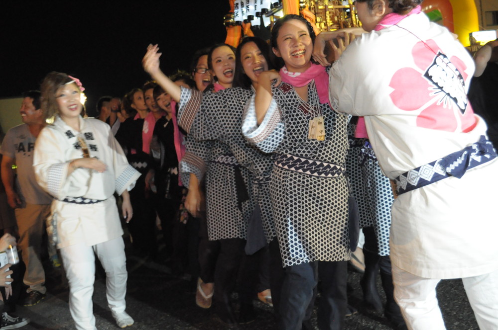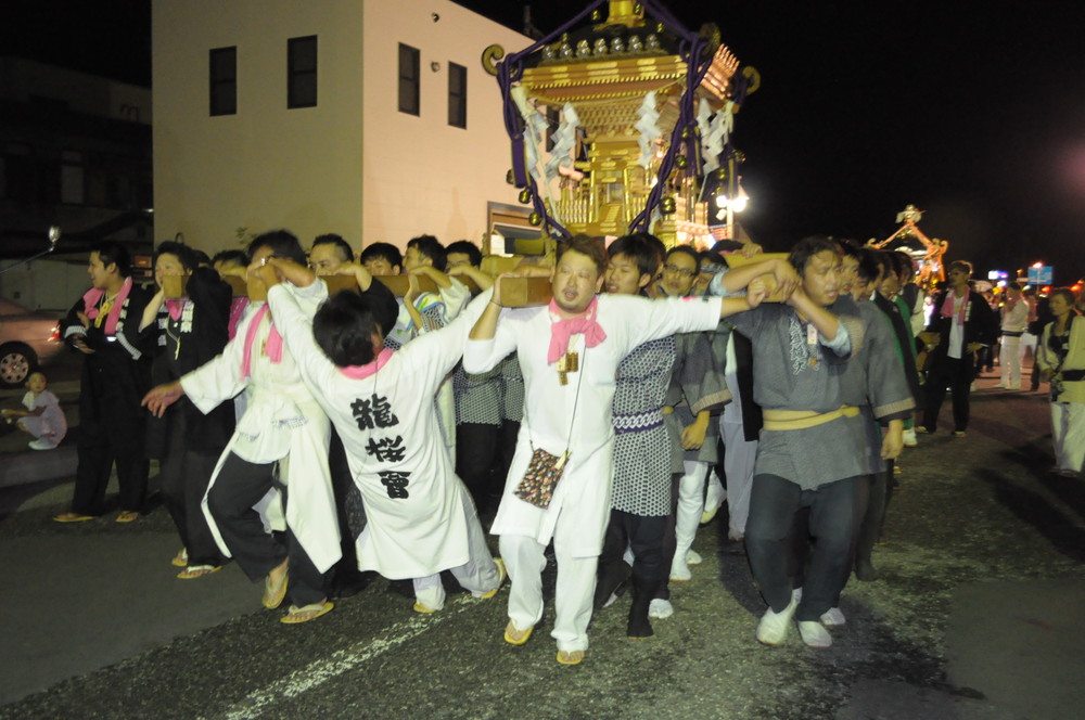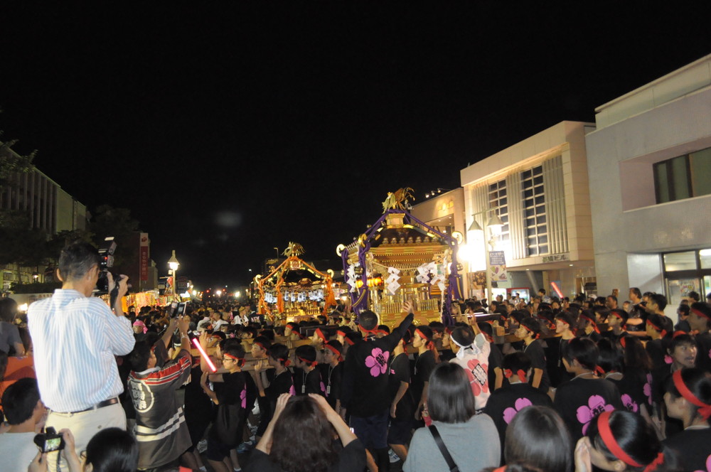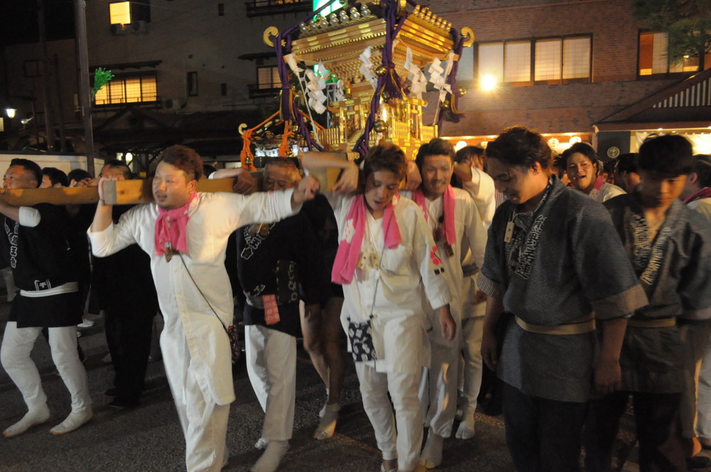 屋台の明かりに照らされた通りを威勢よく練り歩きました。