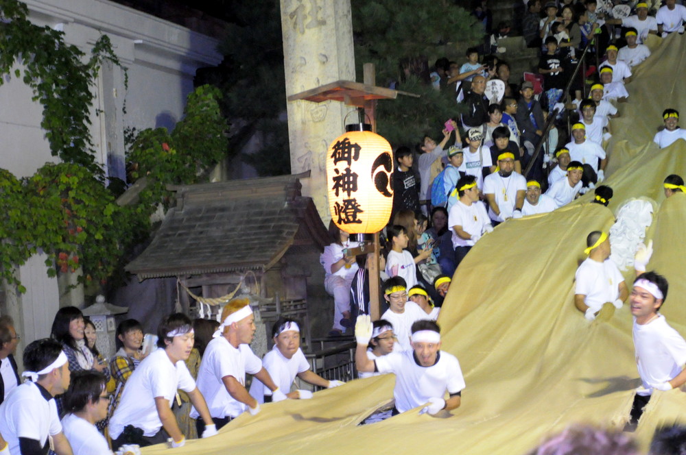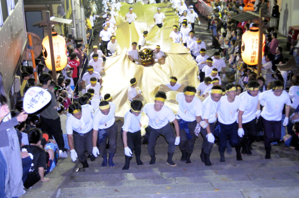 若者獅子が神社の急な石段を上り下りする様子には息をのみ、観客も大いに沸き立ちます。