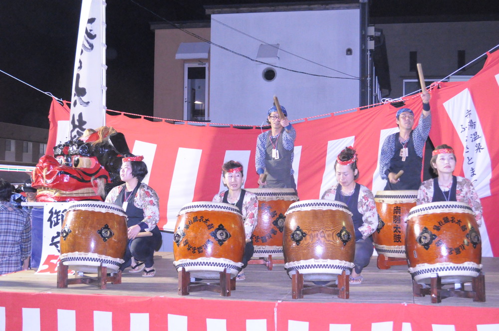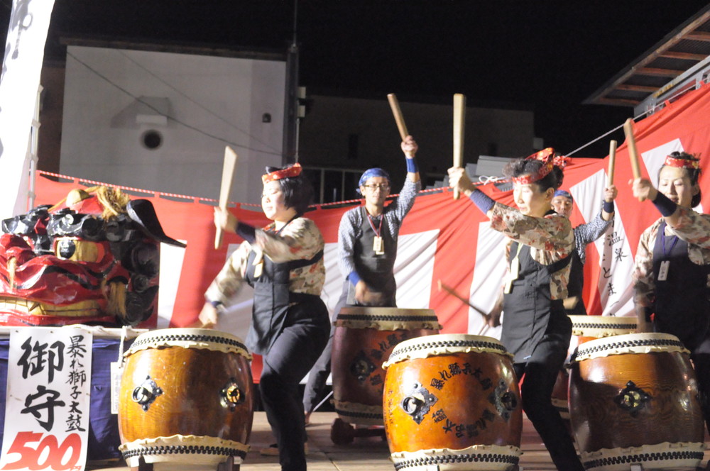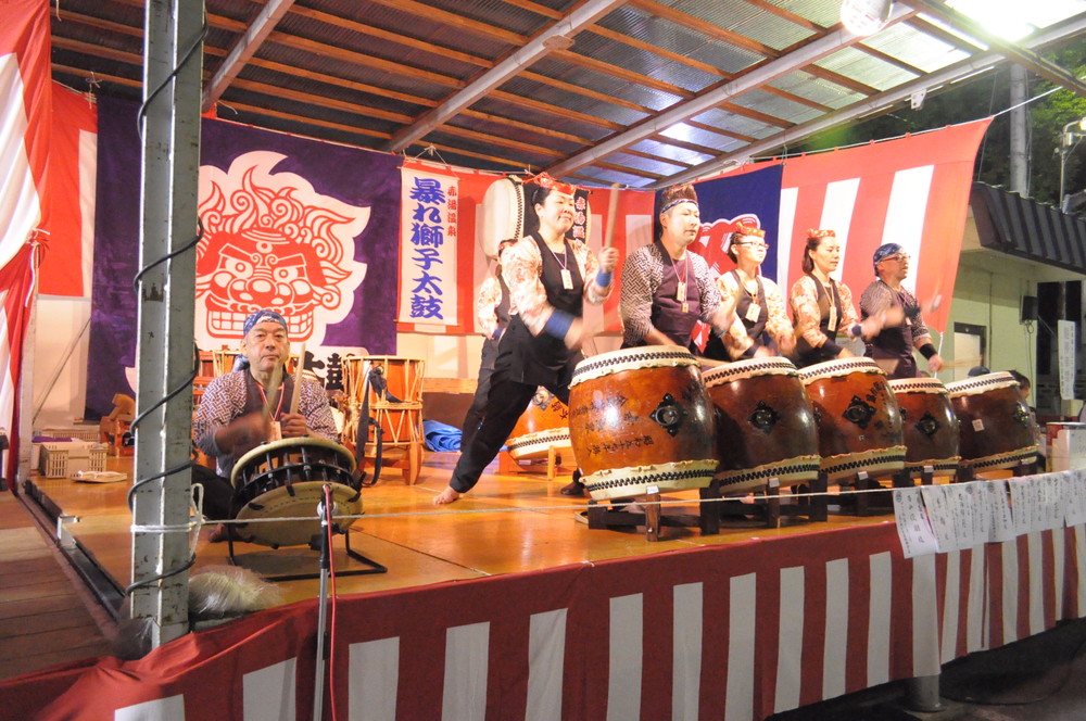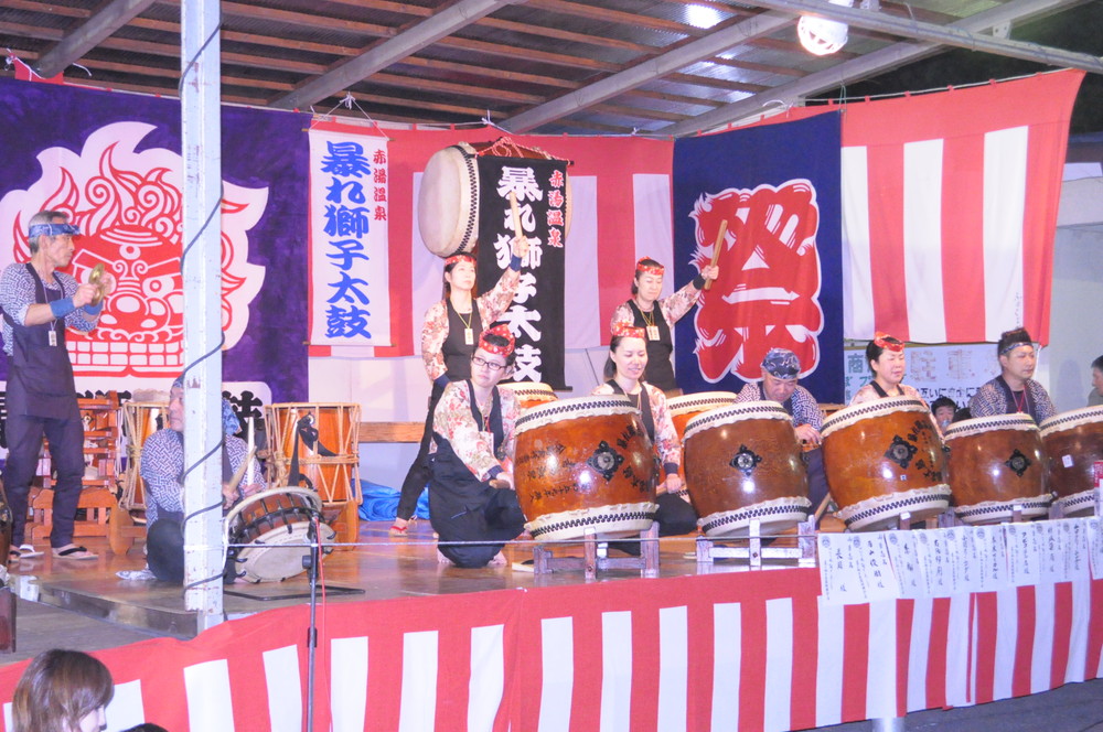 暴れ獅子太鼓は、赤湯温泉ふるさと祭り二日目のメインイベント、暴れ獅子の勇壮な動きを一層鼓舞するように、太鼓を赤湯の町に響きわたらせました。