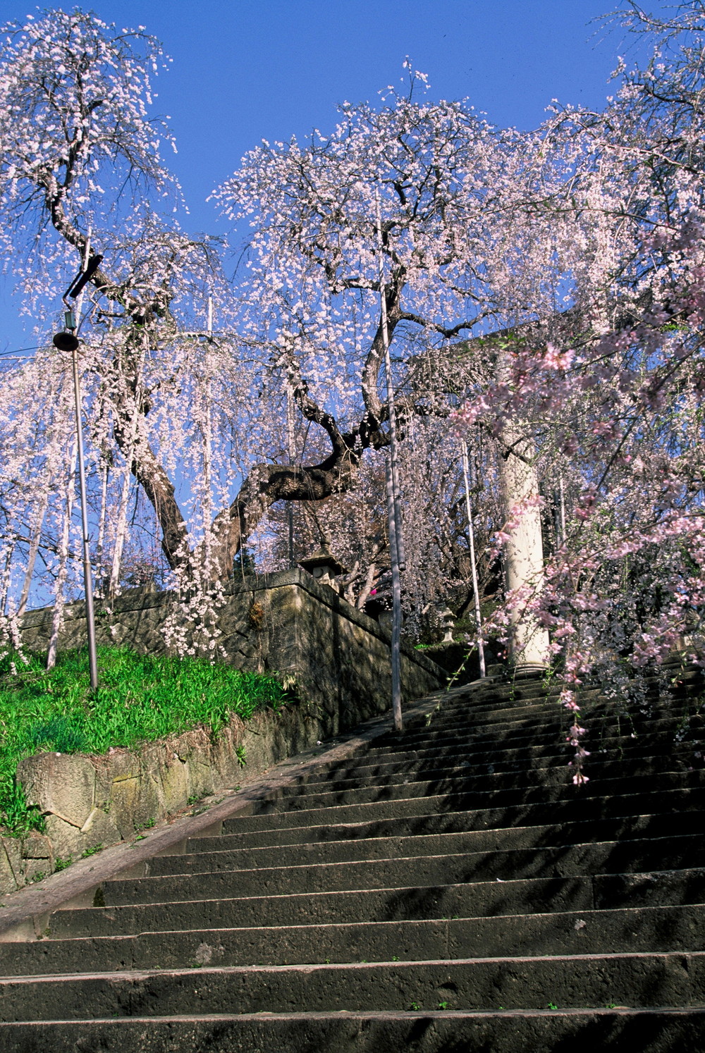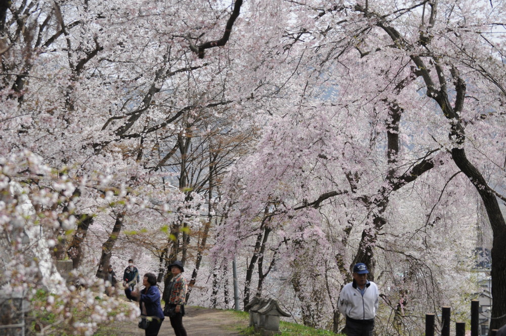 置賜盆地を一望でき、「さくら名所100選」にも選ばれている。